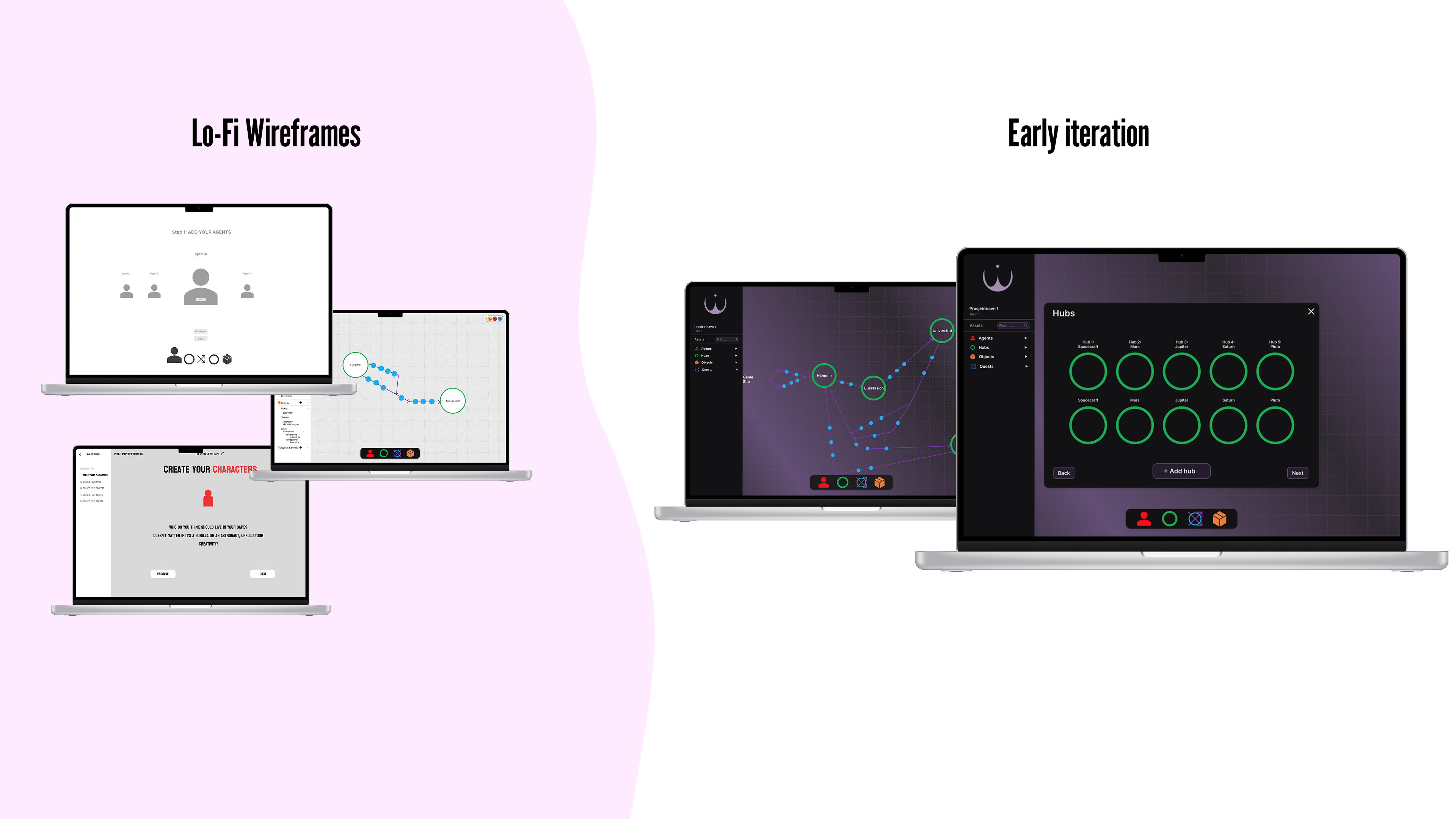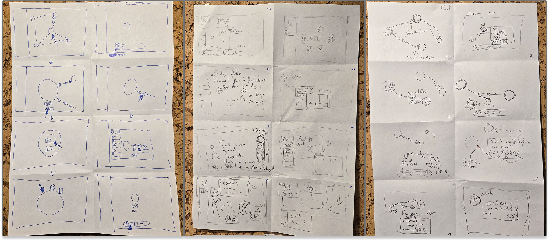 The prototype was developed through several iterations. From low-fidelity on paper, made in the beginning of the design process to test ideas, to high fidelity prototypes in fima. A coded version was also prototyped. The Figma version prototype was used to explore user interface design, simulate interactions, and communicate the structure of the workshop process. The coded prototype focused specifically on implementing key features of the map-based canvas component in Nova Luna Studio.