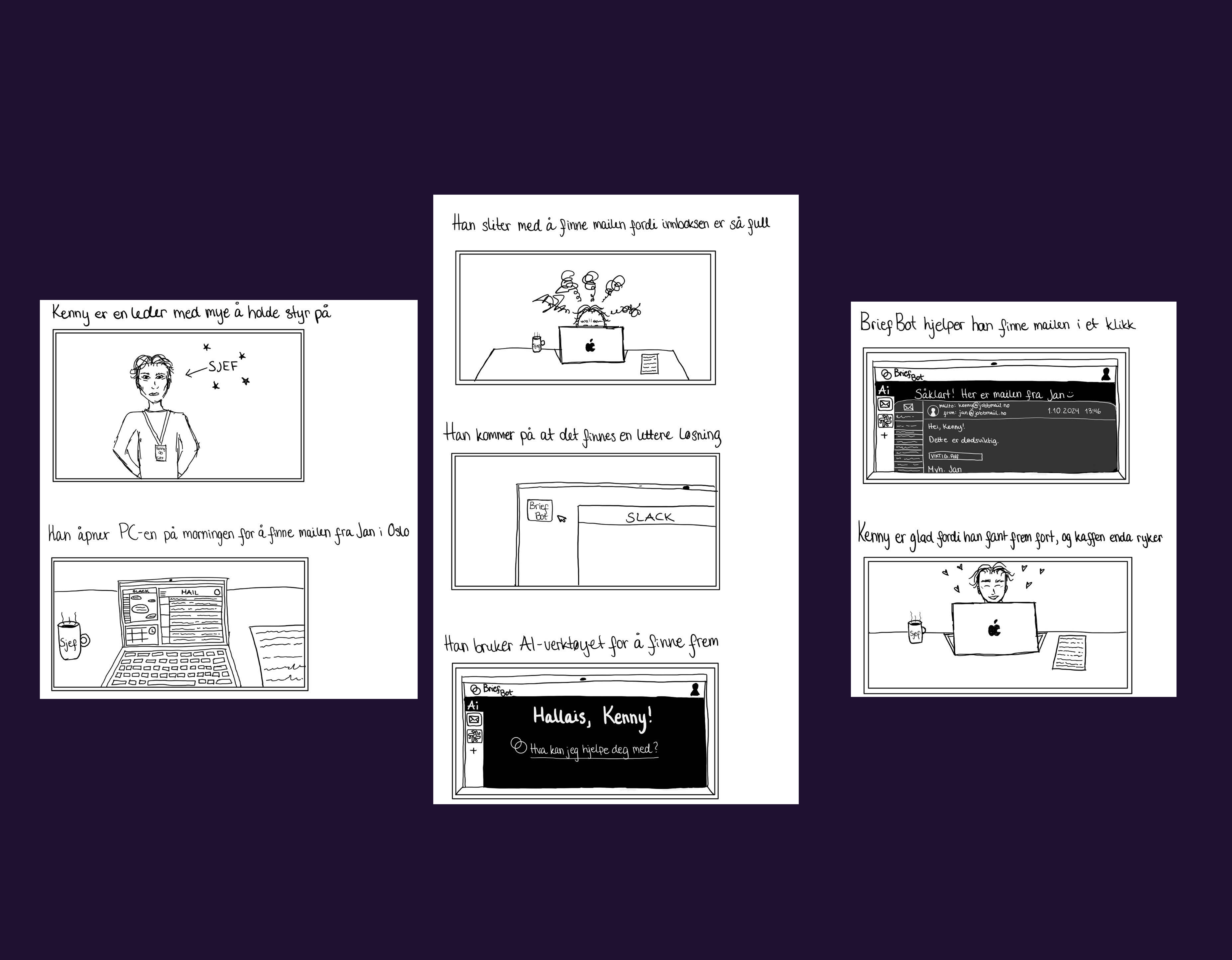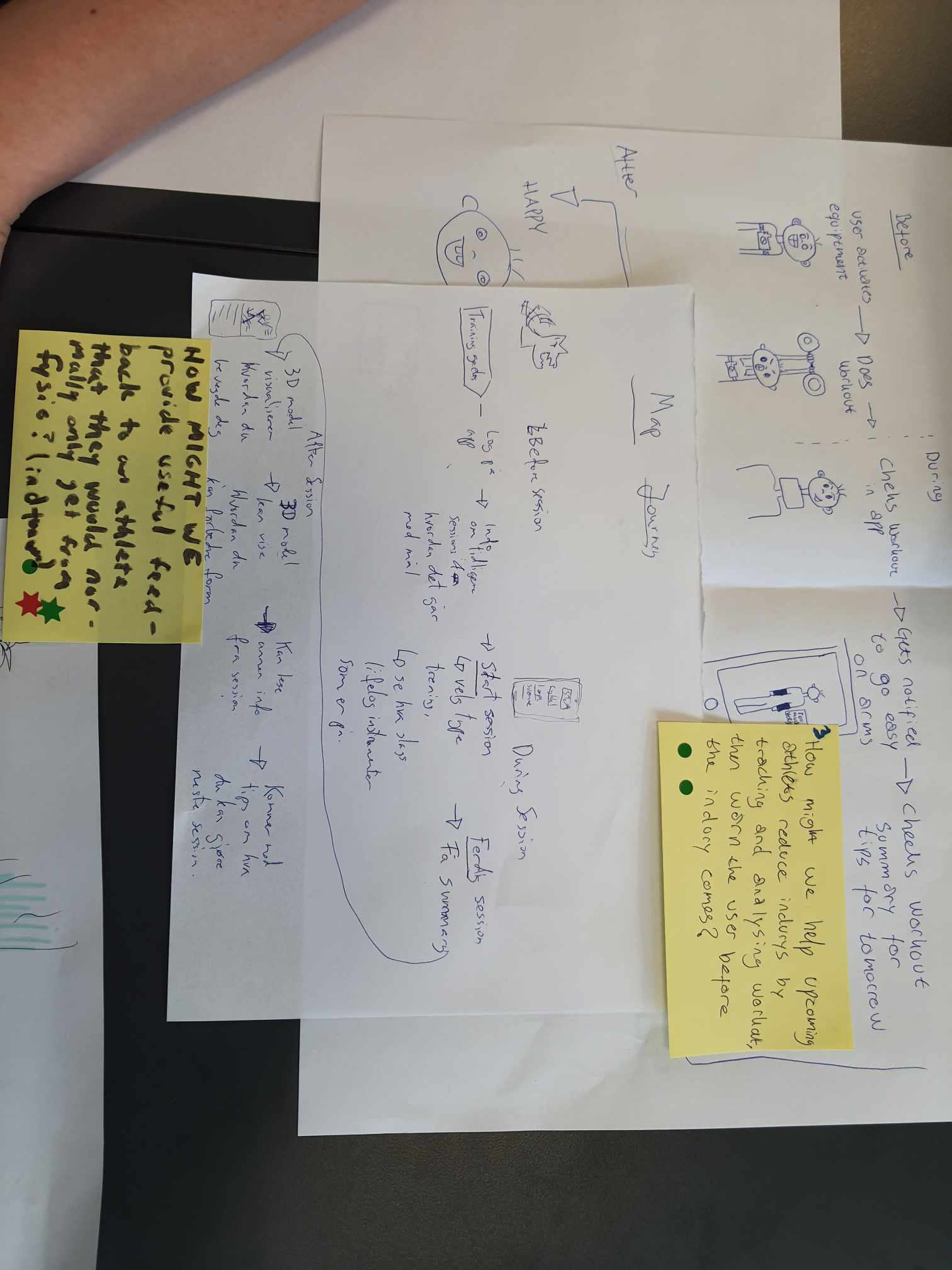 Initially, brainstorming sessions were conducted, during which team members contributed ideas tat could serve as the foundation for the prototype. Following this, the "How might we..." method was applied, an exercise that reframes our problems as opportunities. Personas also played a significant role in identifying the target user for the prototype. Four personas were created to represent the diverse range of workers who could benefit from the prototype. A storyboard was created to illustrate how an imaginary user could interact with the prototype. We also created vast amounts of paper wireframes to decide on key features.